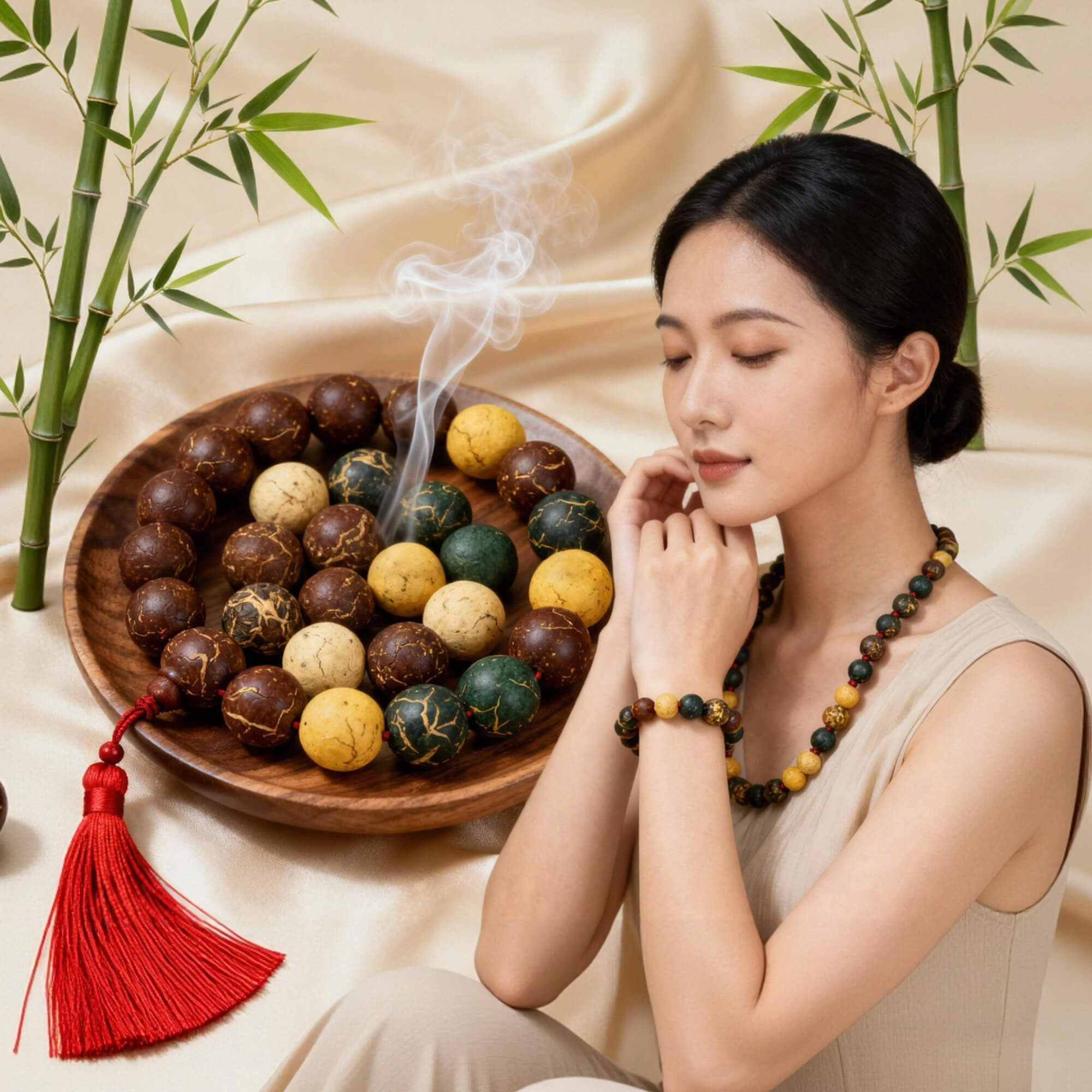 HeXiang Beads are artisanal herbal incense beads infused with a soft, natural aroma — designed to support calm, focus, and intentional living.